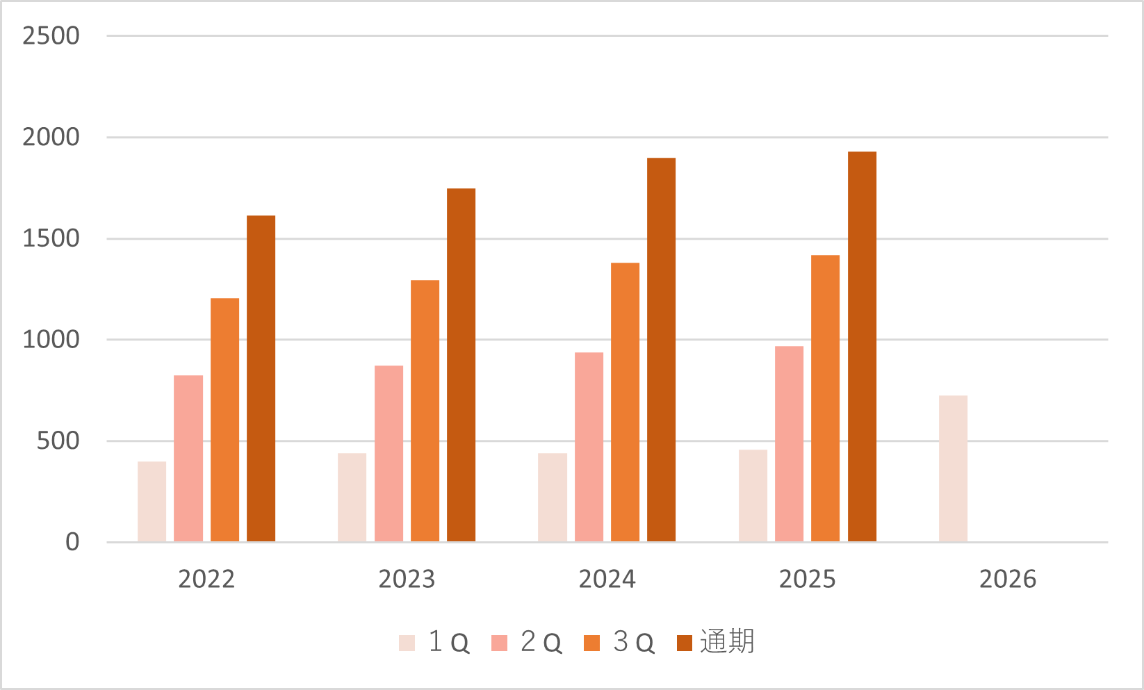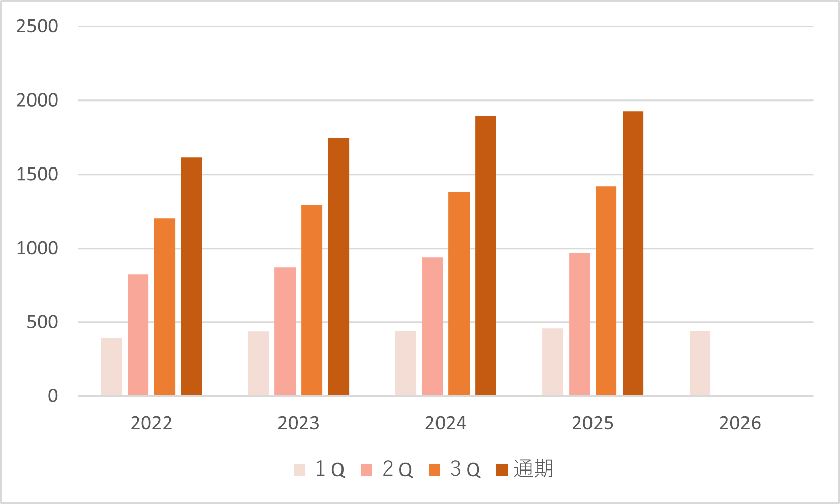 | 通期 | 1,615 | 1,749 | 1,897 | 1928 | |
