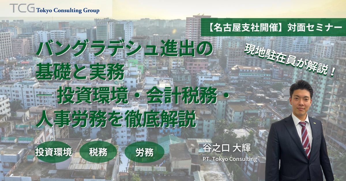 【11月20日】【名古屋支社開催】バングラデシュ進出の基礎と実務 ― 投資環境・会計税務・人事労務を徹底解説