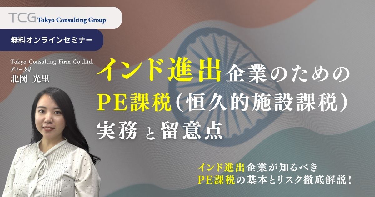 【4月24日】【Webセミナー】インド進出企業のための「PE課税(恒久的施設課税)」実務と留意点 〜インド進出企業が知るべきPE課税の基本とリスク徹底解説〜