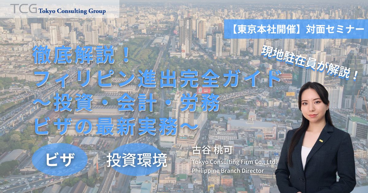 【1月9日】【東京本社開催】徹底解説!フィリピン進出完全ガイド~投資・会計・労務・ビザの最新実務~