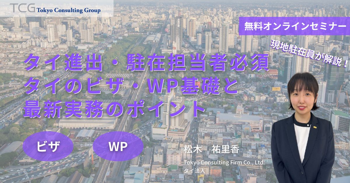 【1月15日】【Webセミナー】タイ進出・駐在担当者必須:タイのビザ・WP基礎と最新実務のポイント