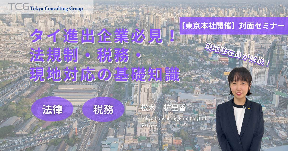 【1月28日】【東京本社開催】タイ進出企業必見!法規制・税務・現地対応の基礎知識