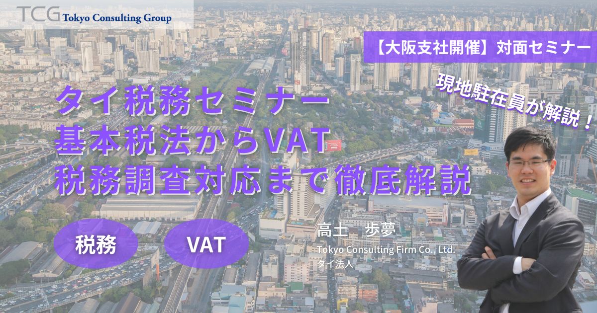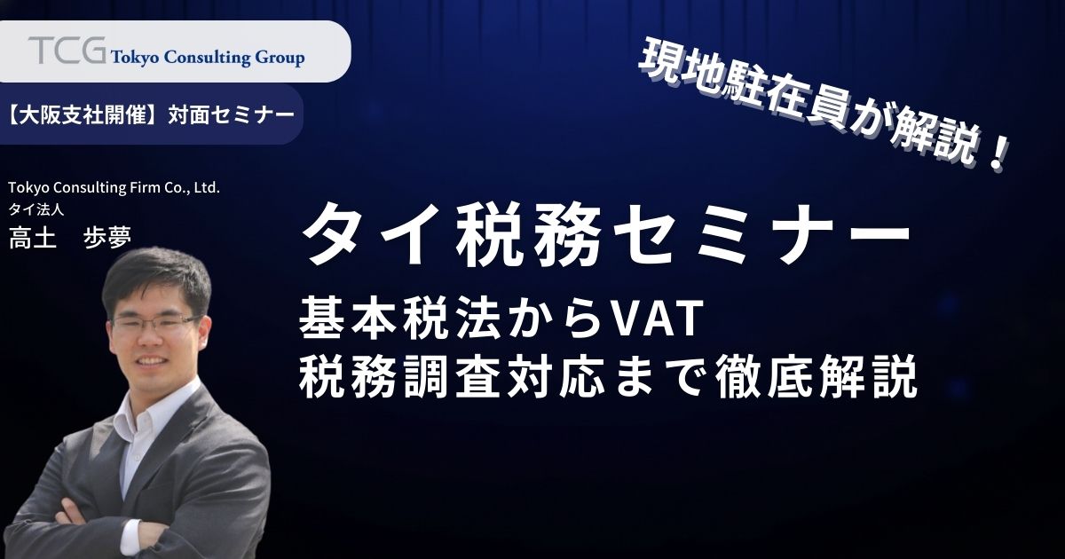 【3月27日】【大阪支社開催】タイ税務セミナー:基本税法からVAT・税務調査対応まで徹底解説