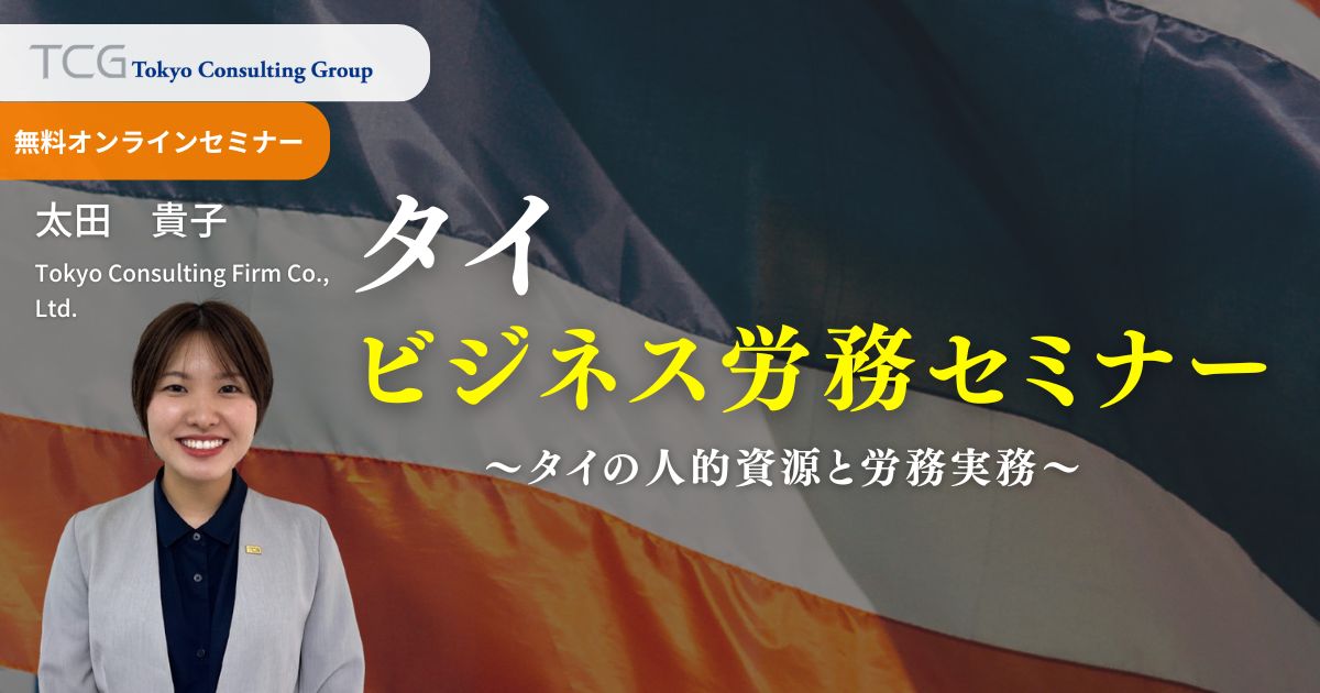 本セミナーでは、タイ人材の特徴や労働慣習、賃金・福利厚生の実務、就業規則や社会保険などの基礎事項に加え、労務管理上の留意点について、法的な側面も含めて分かりやすく解説いたします。