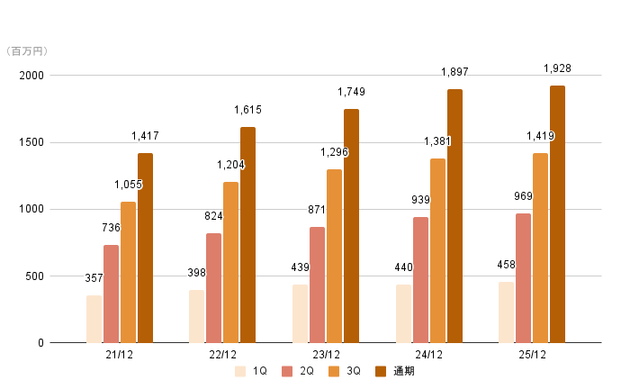 | 通期 | 1,417 | 1,615 | 1,749 | 1,897 | 1928 |