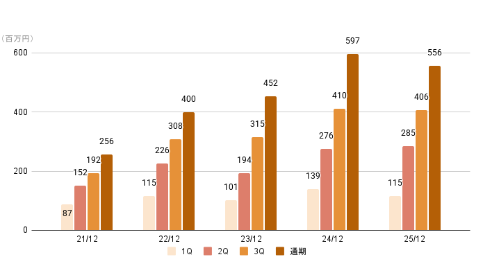 | 通期 | 256 | 400 | 452 | 597 | 556 |