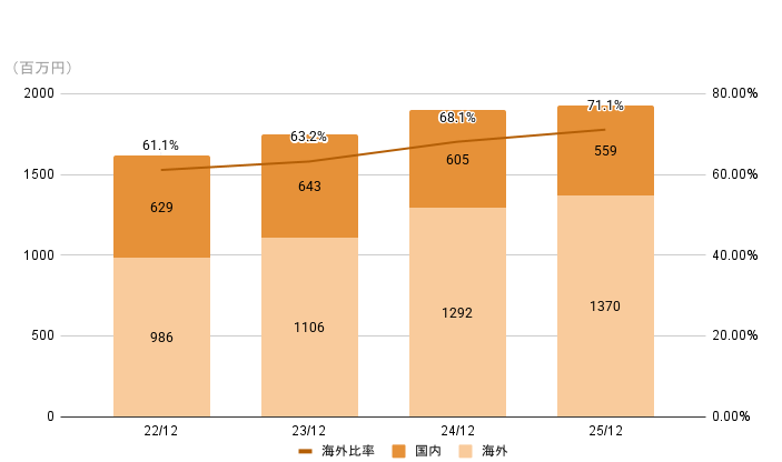 | 海外比率 | 61.1% | 63.2% | 68.1% | 71.1% |